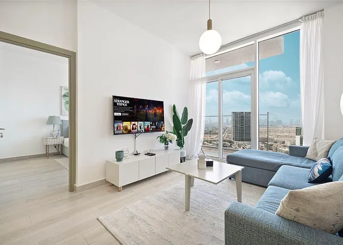 O Luxury One-Bedroom Apartment In Bloom Heights Dubai de 68 m^2 está situado a uma distância aproximada de 6 km de Clube de Golfe Emirates e dispõe de piscina privada. Os hóspedes podem relaxar no jardim privado neste apartamento de 2 quartos.